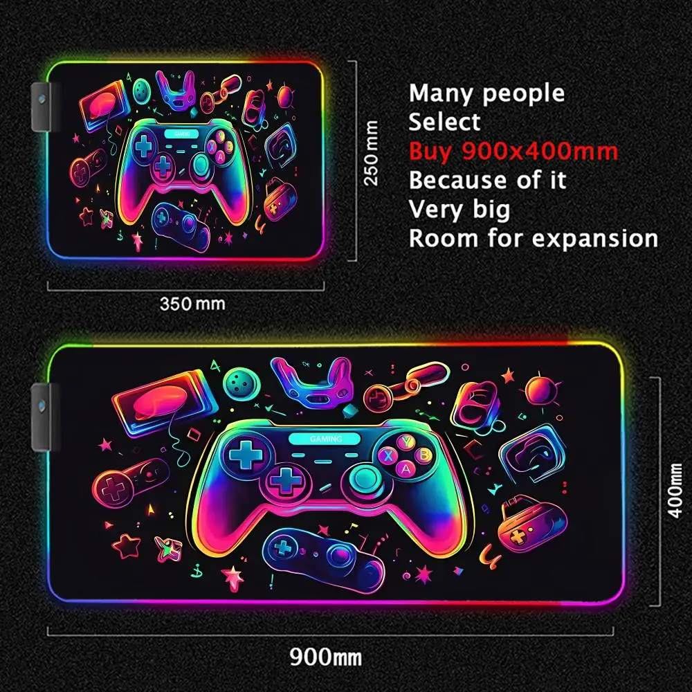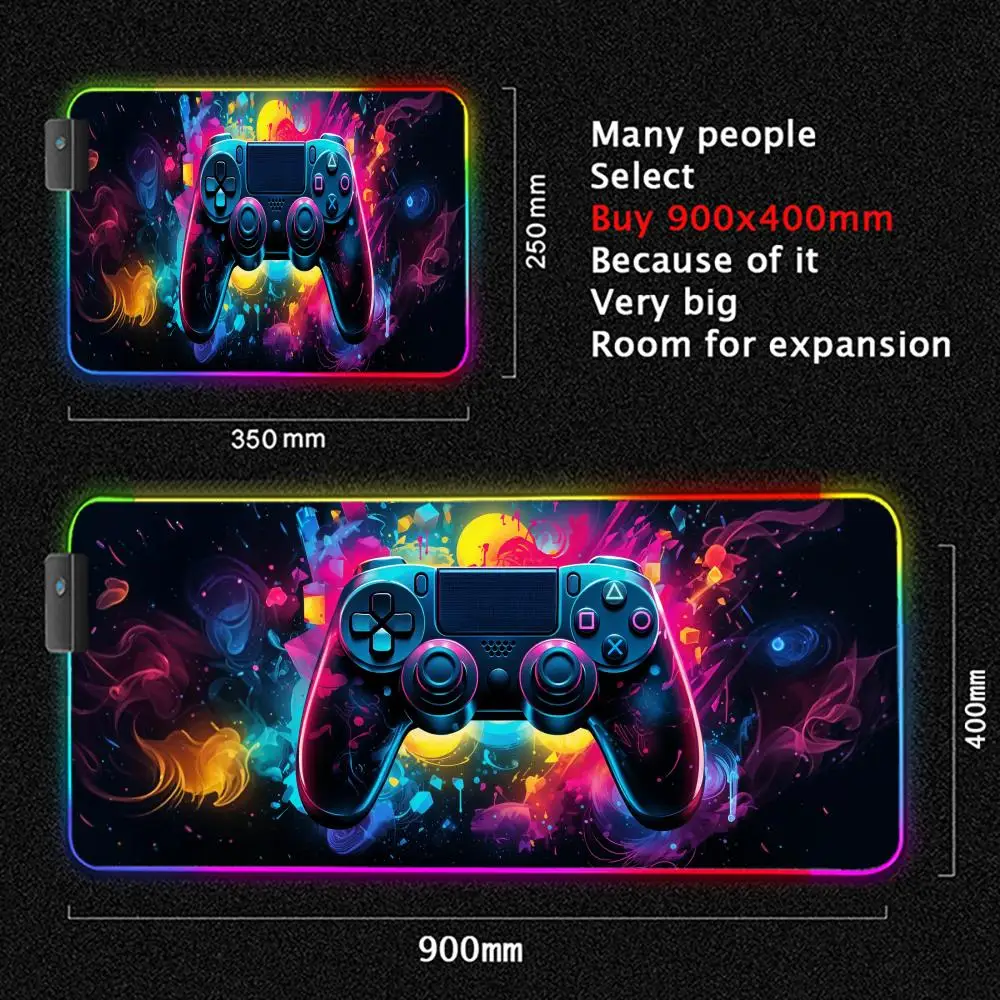 Gamepad pattern Mouse Pad XXL RGB Gaming MousePad HD Gamer Accessories Large LED Light MousePads PC Computer Carpet With Backlit