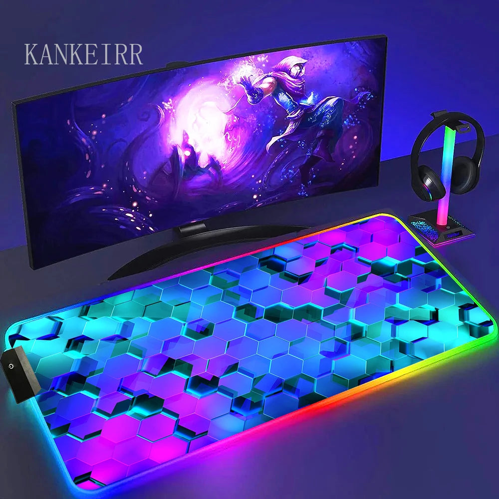 Geometry Large RGB Gamer Mousepad With Backlight Mouse Mat Gaming Mousepads LED Keyboard Mats Luminous Desk Pads Mouse Pad PC