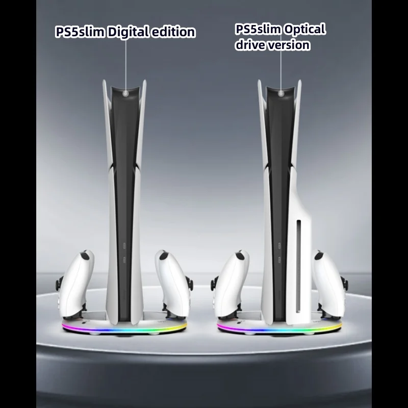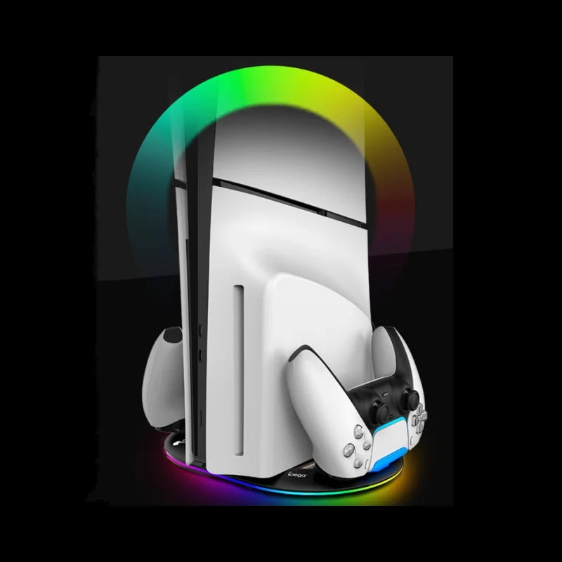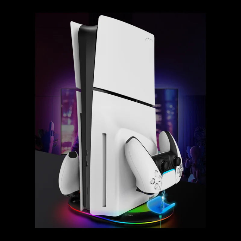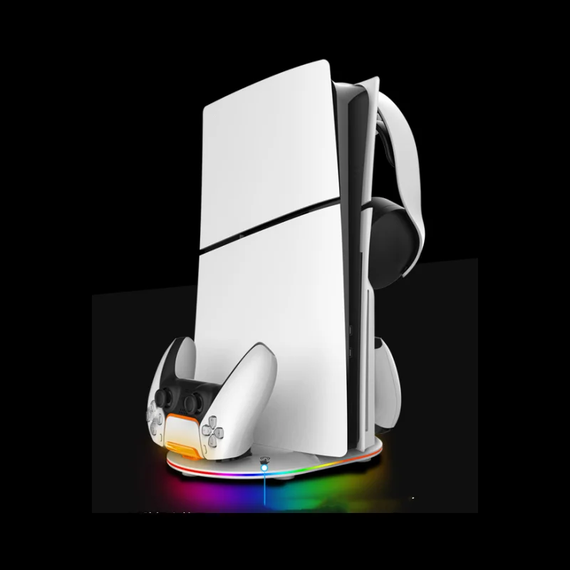 PS5pro, PS5slim Game console Optical drive digital upright stand base with lights P5 dual controller seat charger headset mount