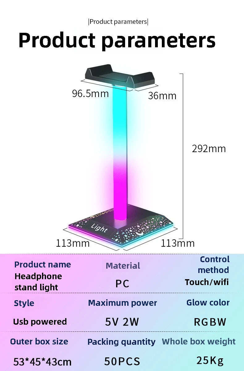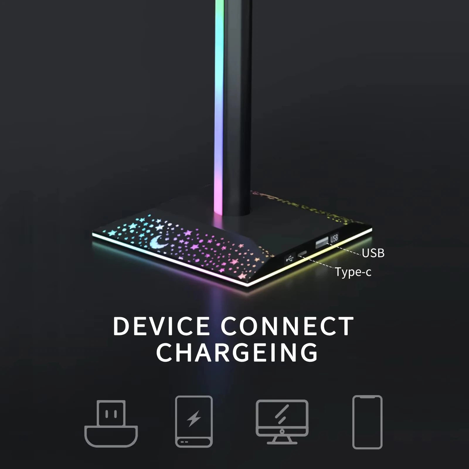RGB Gaming Headset Stand LED Lights Headphone Stand Type-C & USB Charging Port Desk Lamp for Computer Room Bedroom Desktop