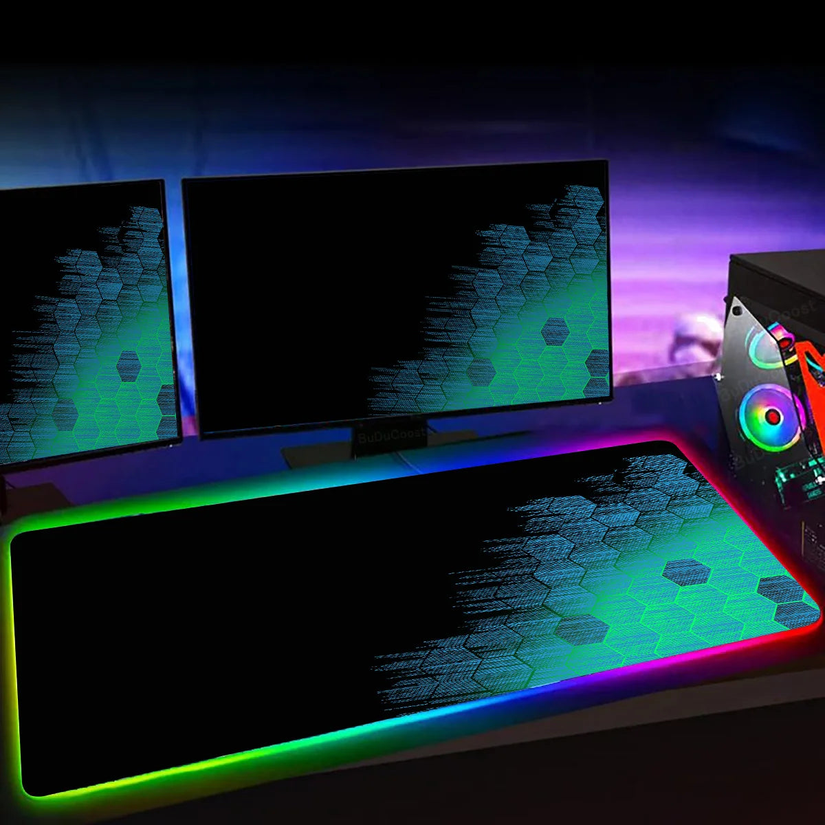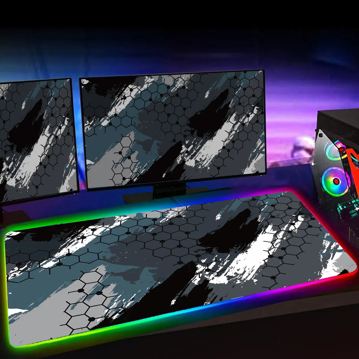 RGB Hexagon Gaming Mouse Pad XXL Antislip Rug Desk Mat Computer Accessories Office Geometric Mousepad Luminous Extended Game Mat