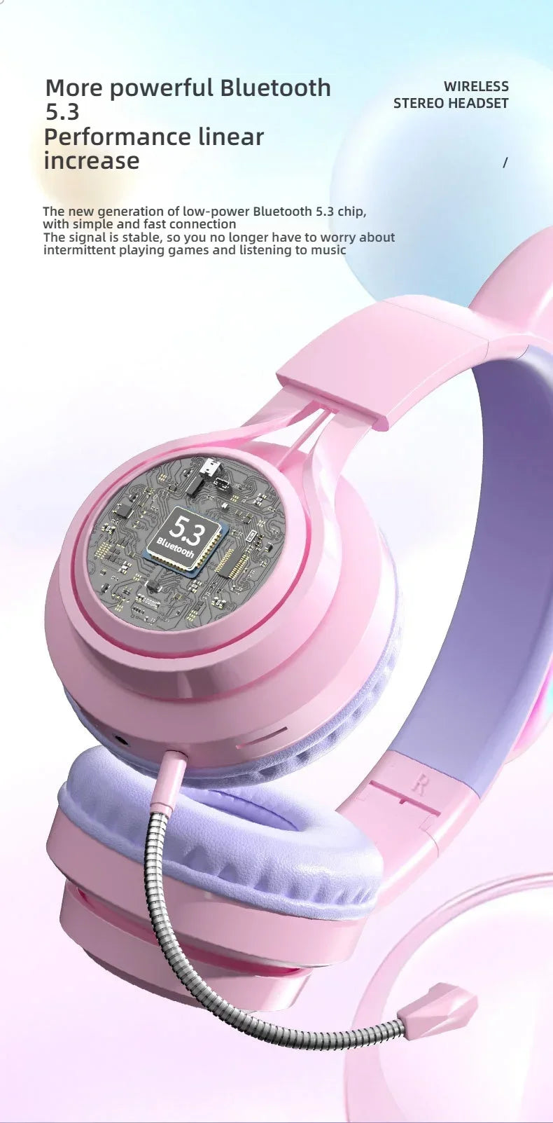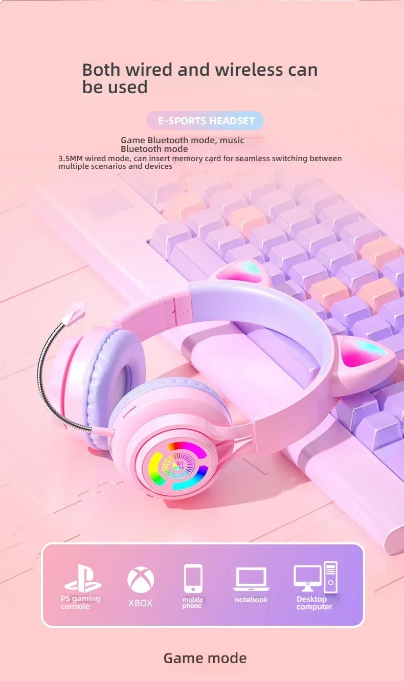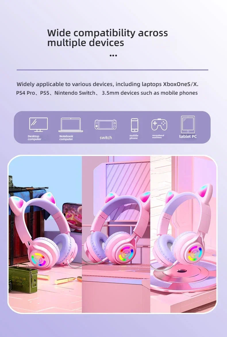 RGB Lighting Headphone For PC Computer iPad Cat Ear Gaming Headset Noise Reduction Headphones With Microphone Children Gift
