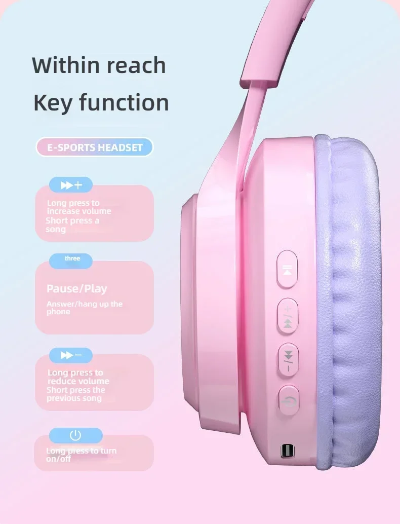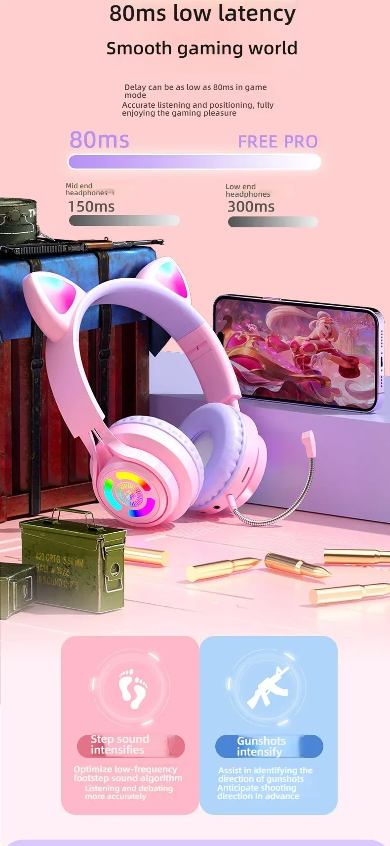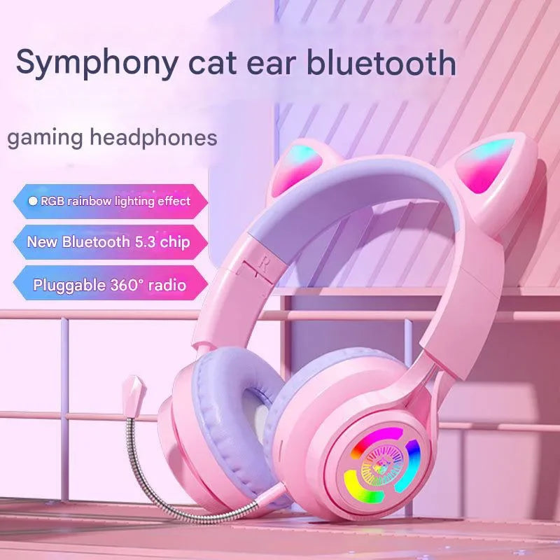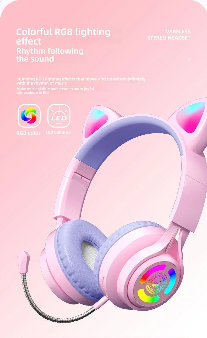 RGB Lighting Headphone For PC Computer iPad Cat Ear Gaming Headset Noise Reduction Headphones With Microphone Children Gift