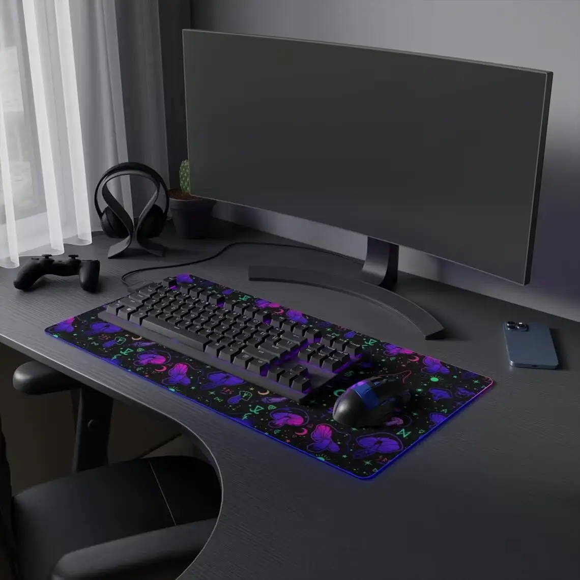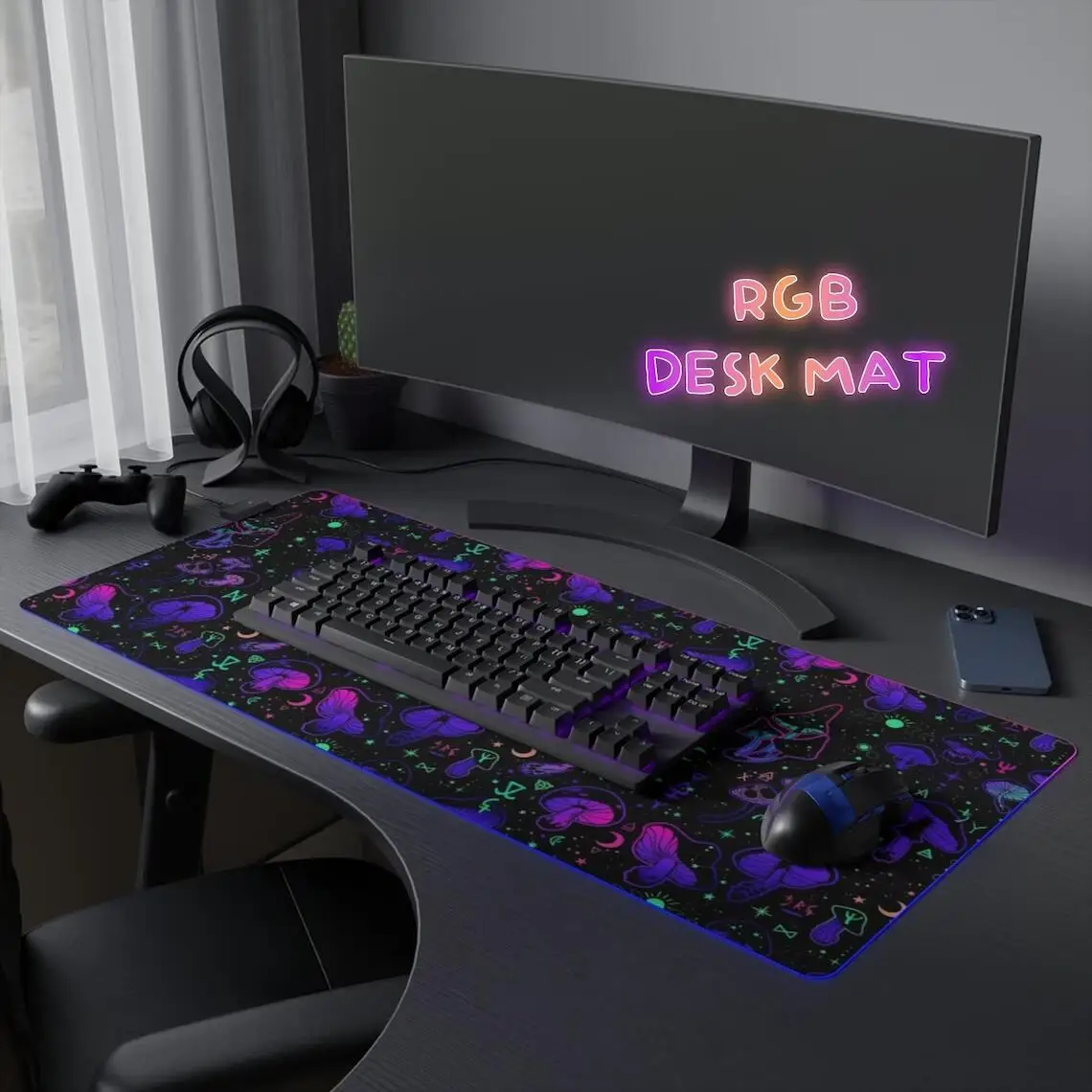 RGB Mouse Pad Mushroom Gaming Desk Mat Celestial Large Mousepad Black Neon Gamer RGB LED Desk Mat Pastel Goth Witchcraft