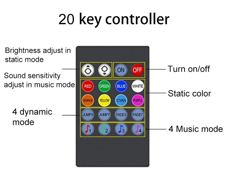 when light strip in music mode, you can adjust the sound sensitivity button to make the music sync effect meet different scenes
