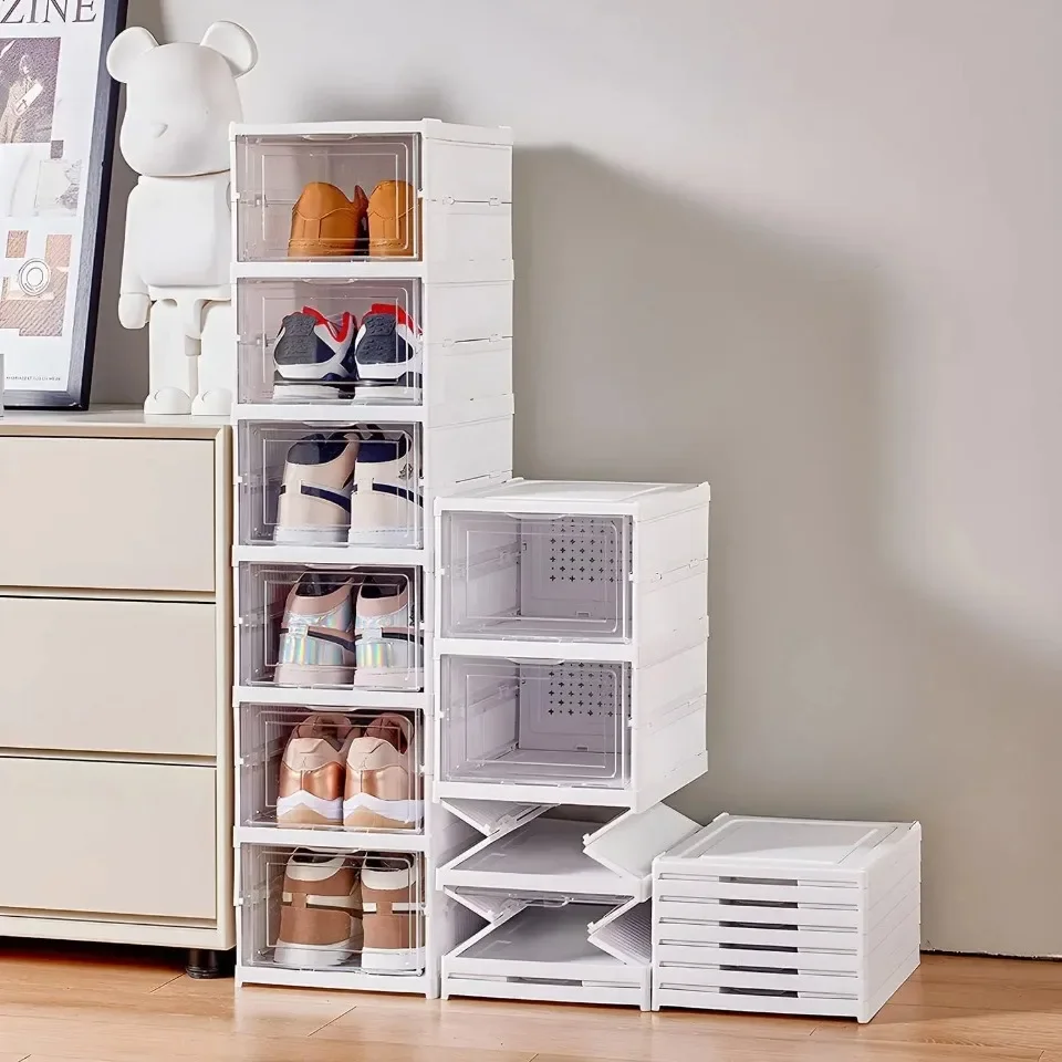 3 or 6 Tier Clear Shoe Organizer Stackable Foldable Cabinet for Sneakers Dustproof Transparent Display Rack Space Saving Storage