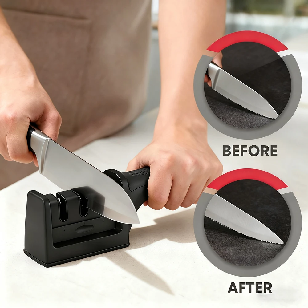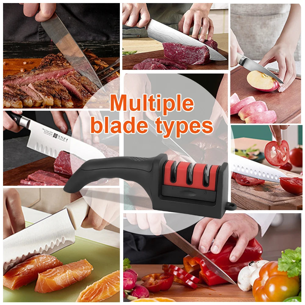3 Stage Knife Sharpeners for Kitchen Knives 4 in1 Kitchen Knife Sharpener – Ergonomic and Easy to Use Knife Sharpening Kit