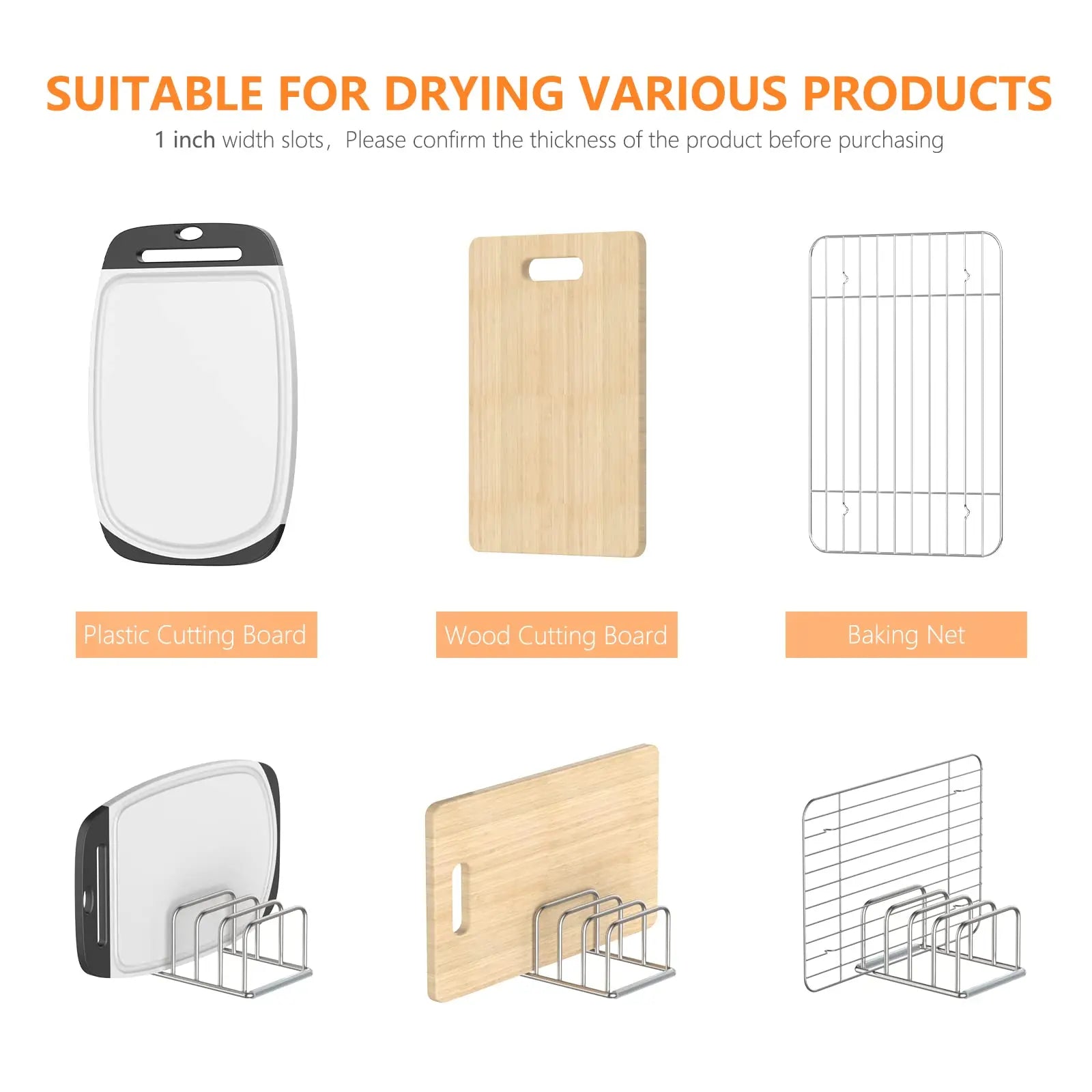 · VERSATILE DESIGN: This rack is designed to hold and organize different kinds of kitchen stuff, can be used to organize cutting boards, bakeware, cookie sheets,baking pans. It can be also used in your home office to organize office items.