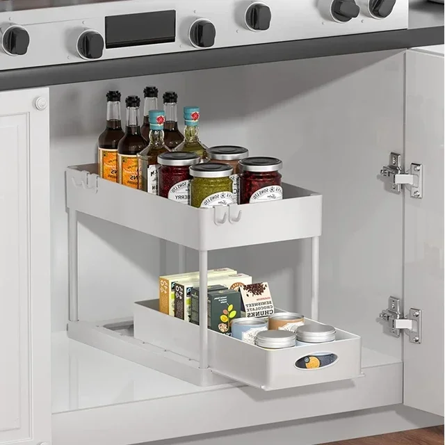 kitchen Organizer Under Sink Drawer Storage Rack 2 Tier Organizer Storage Multi-purpose Drawer Holder Rack for Kitchen Bathroom