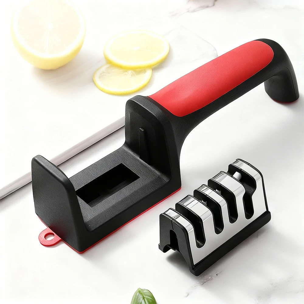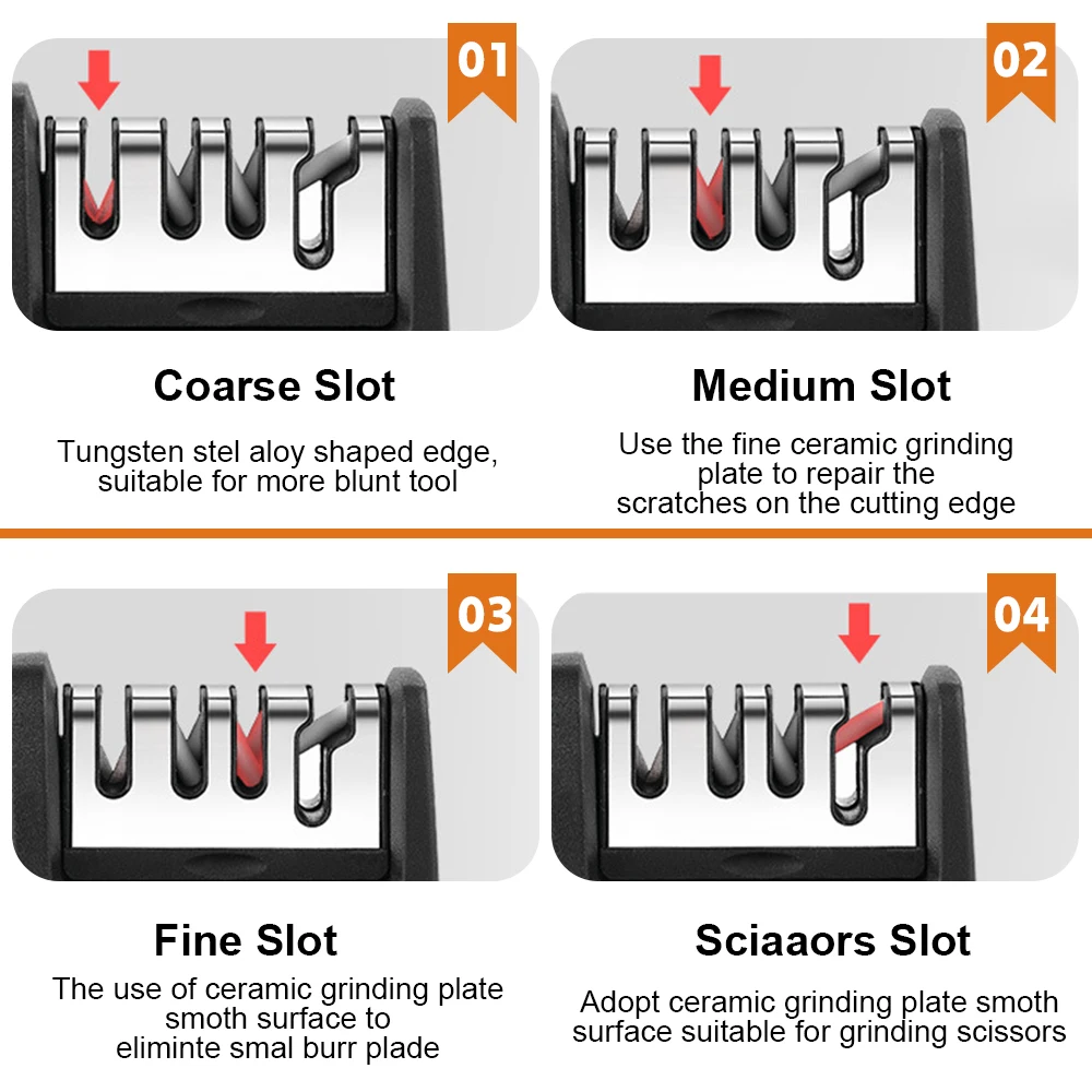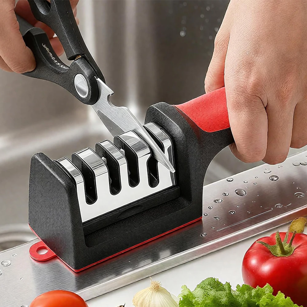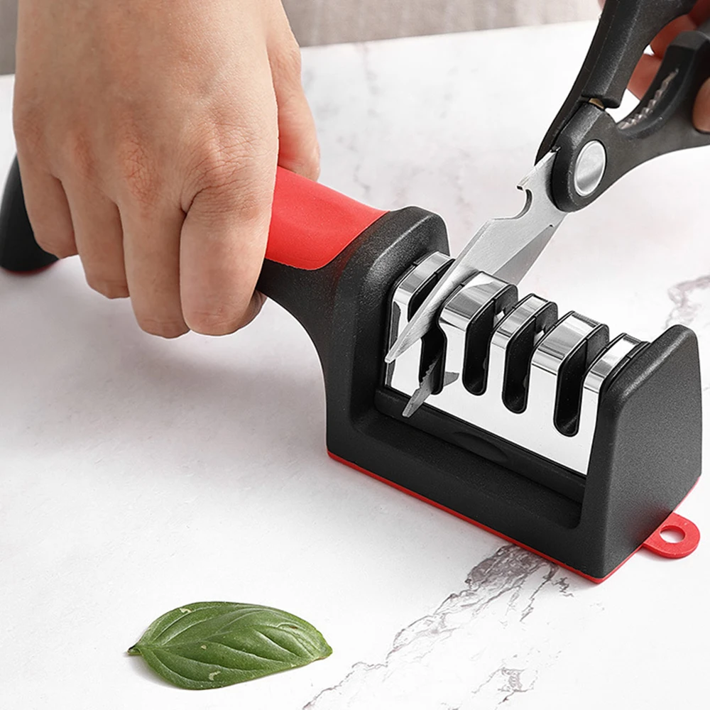 Knife Sharpeners for Kitchen Knives & Scissors, Ergonomic and Easy to Use Knife Sharpening Kit with 3/4 Stage Sharpening Slots