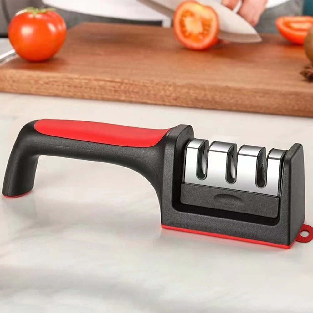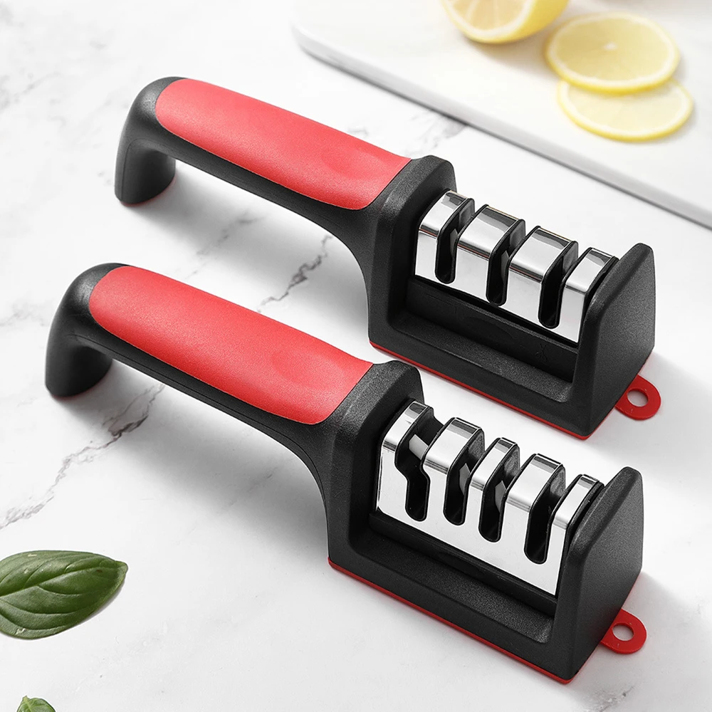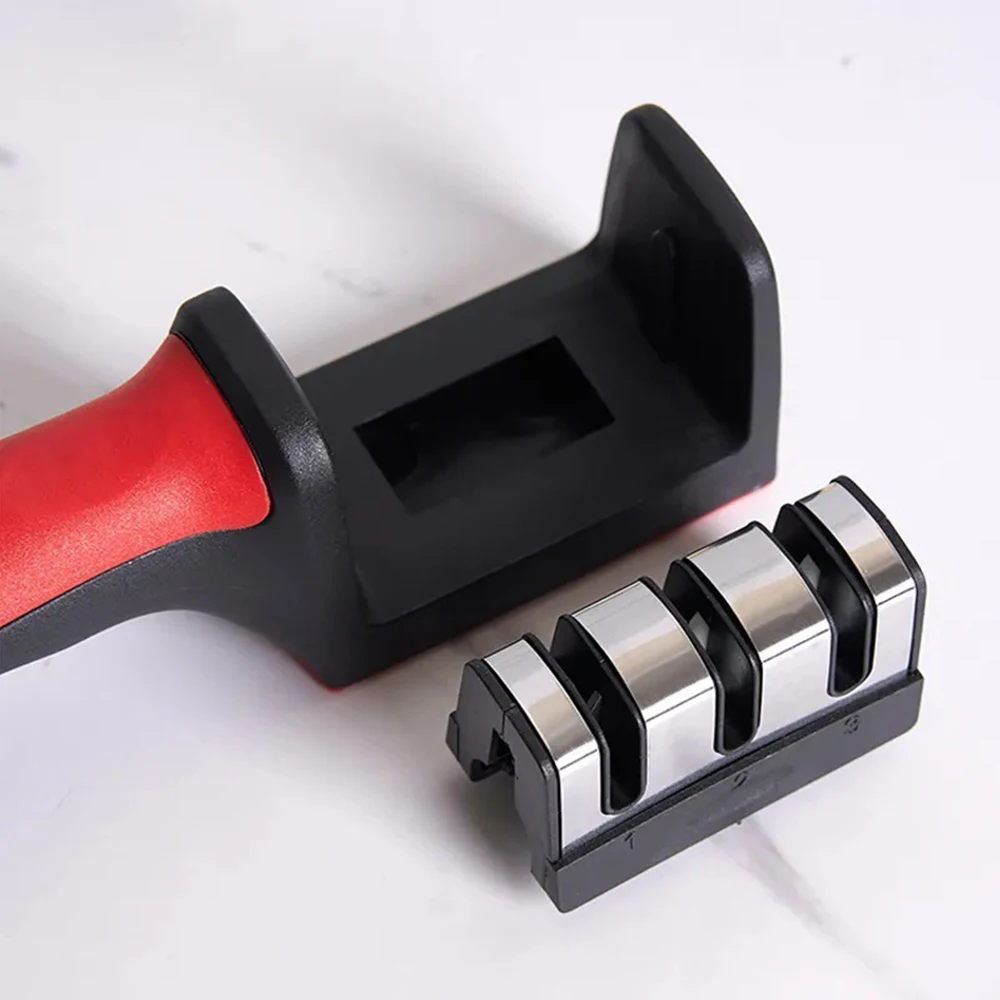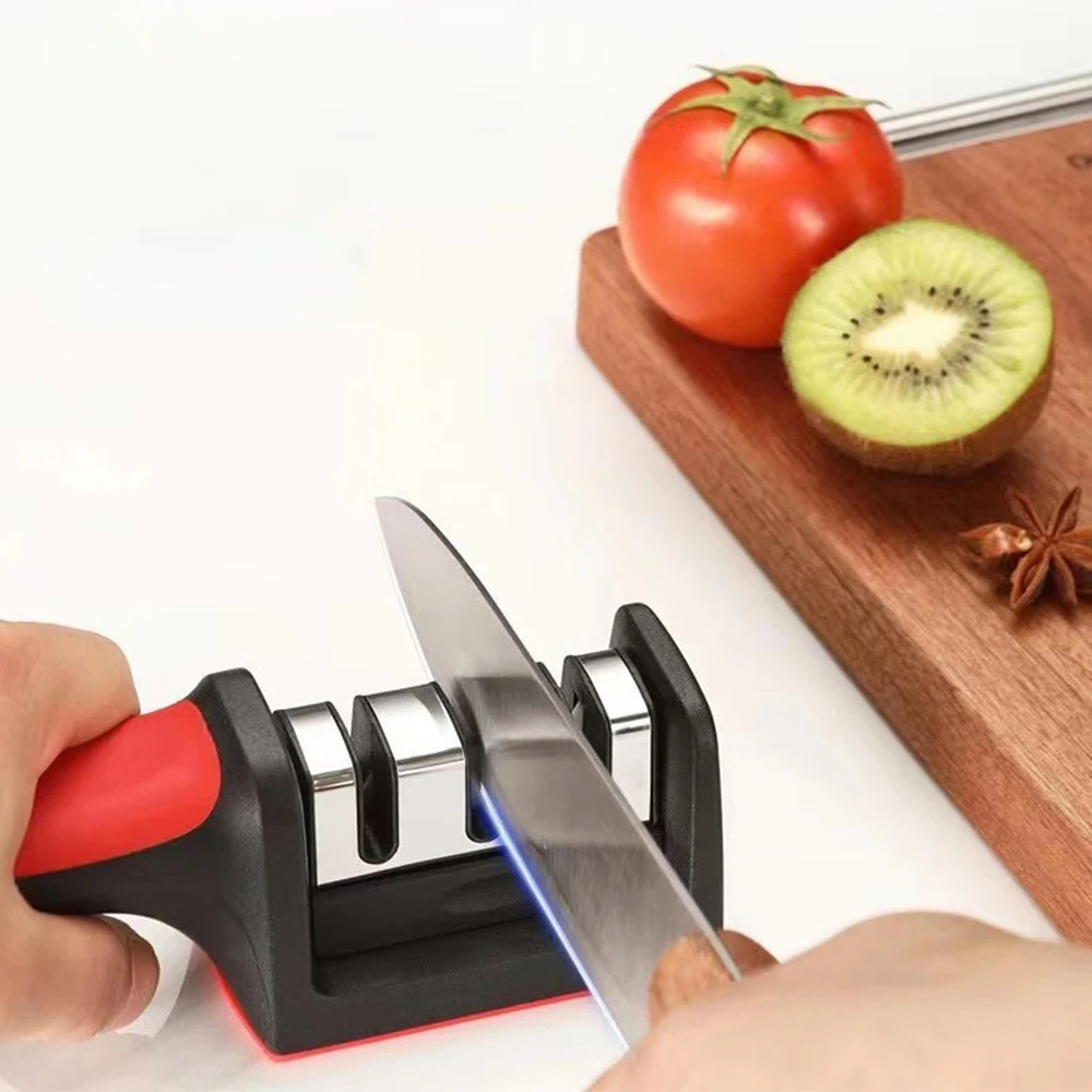 Knife Sharpeners for Kitchen Knives & Scissors, Ergonomic and Easy to Use Knife Sharpening Kit with 3/4 Stage Sharpening Slots