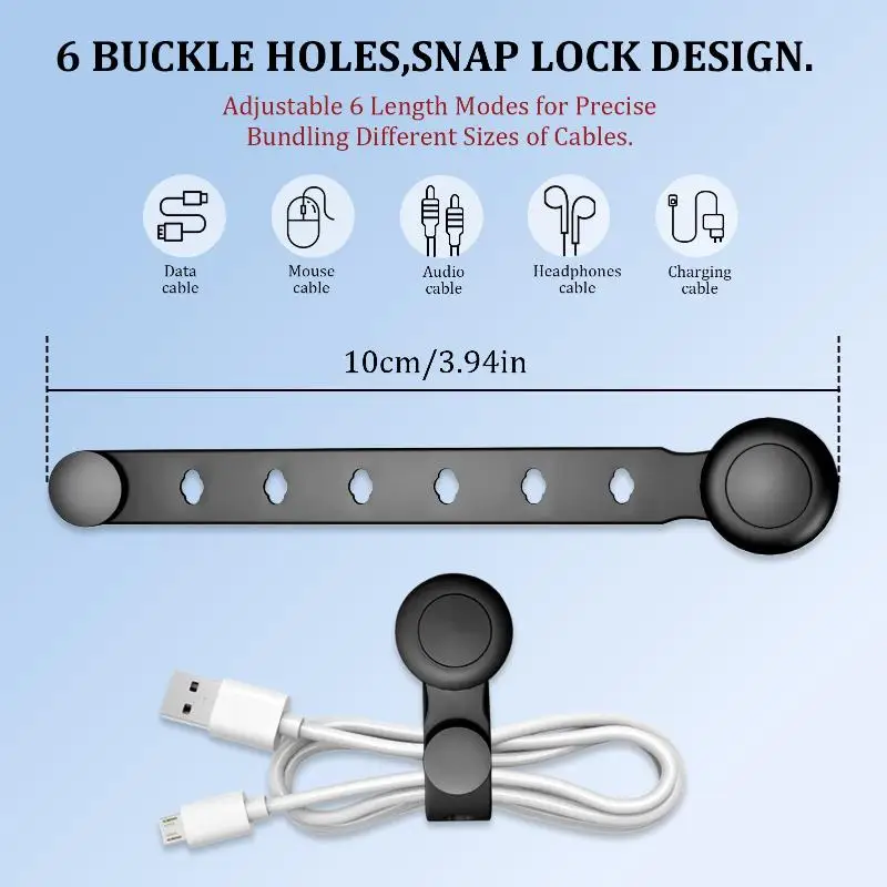 1. Multifunctional Cable Organizer: Our cable organizer features a safety button design that securely holds cables and keeps them neatly organized. The elastic design allows it to accommodate cables of all thicknesses.