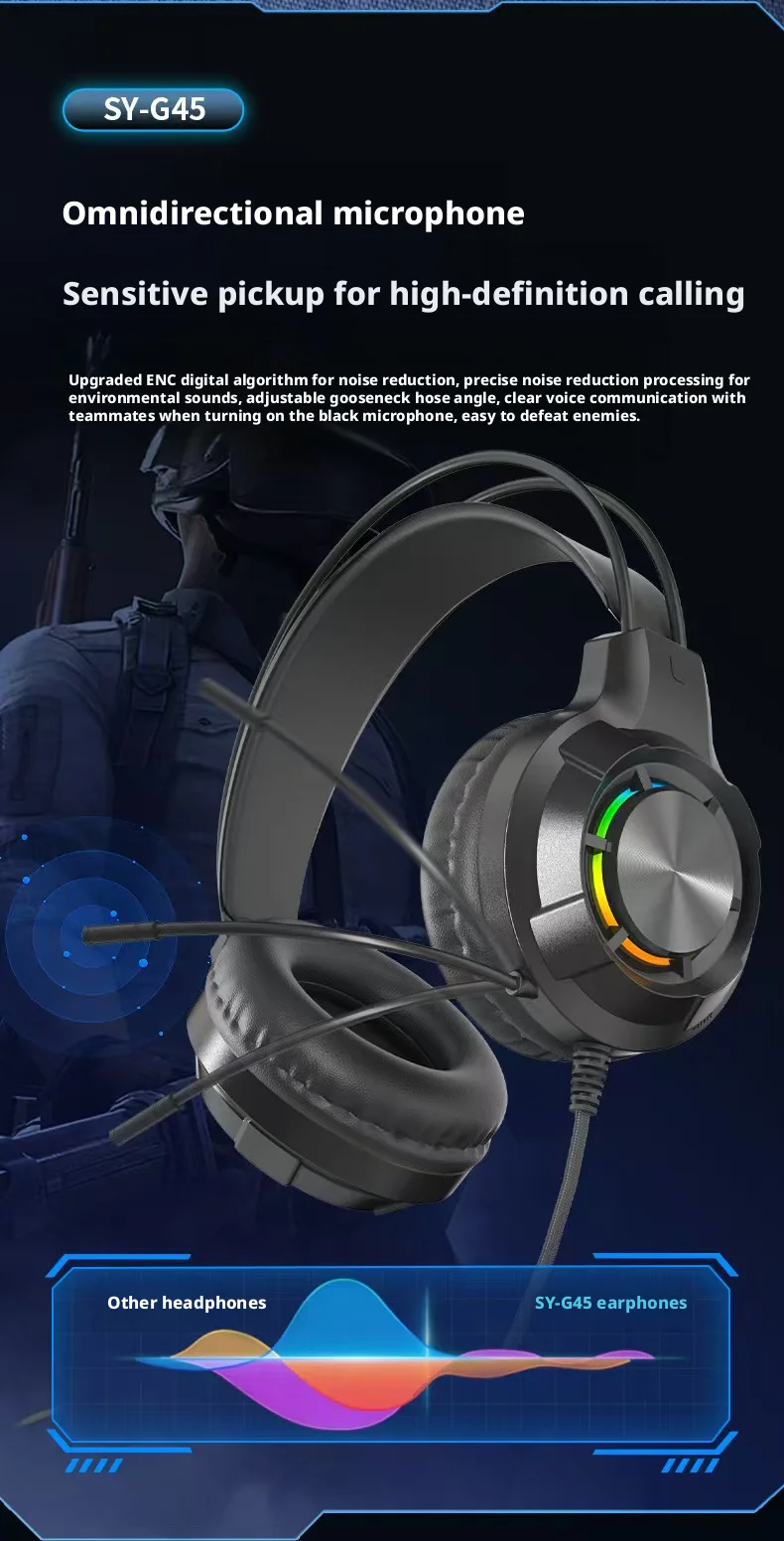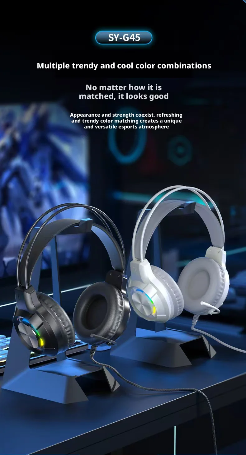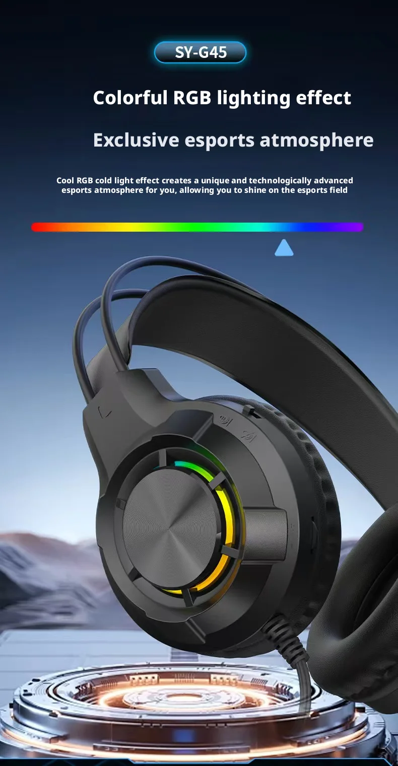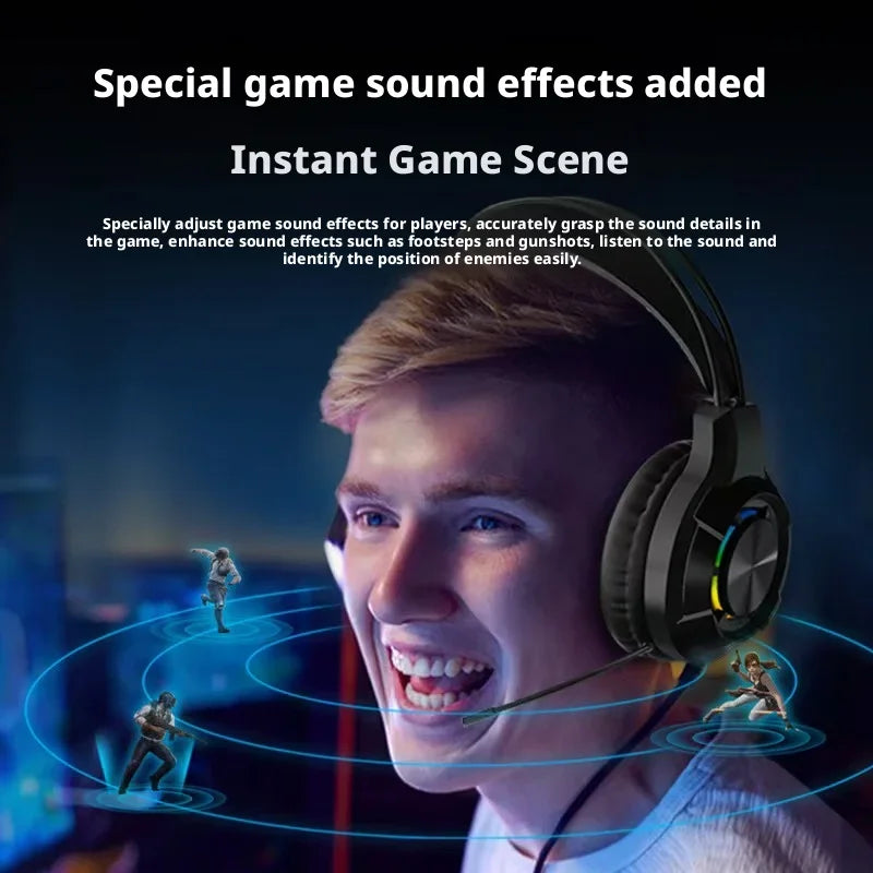 New Wired Gaming Headset with Mic for PUBG RGB Light Deep Bass Noise Reduction Compatible with Laptops Desktops 2 Color Options