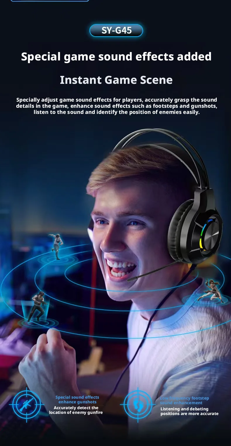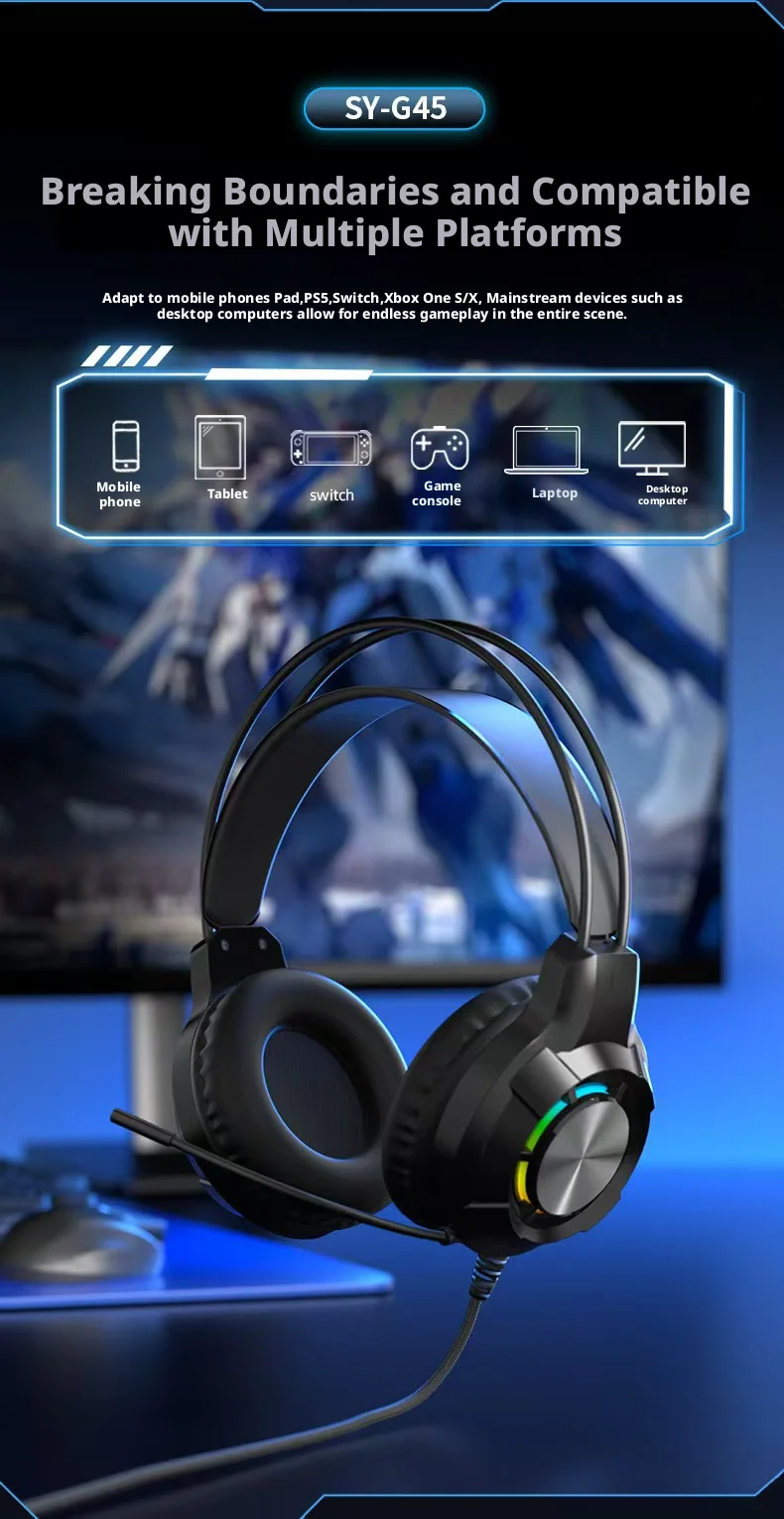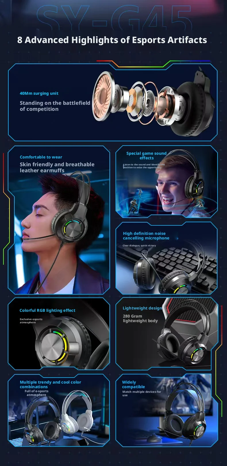 New Wired Gaming Headset with Mic for PUBG RGB Light Deep Bass Noise Reduction Compatible with Laptops Desktops 2 Color Options