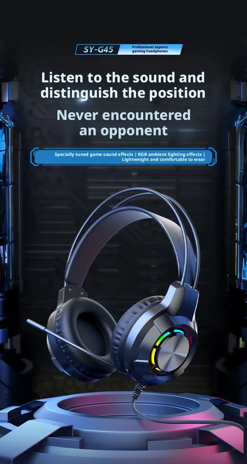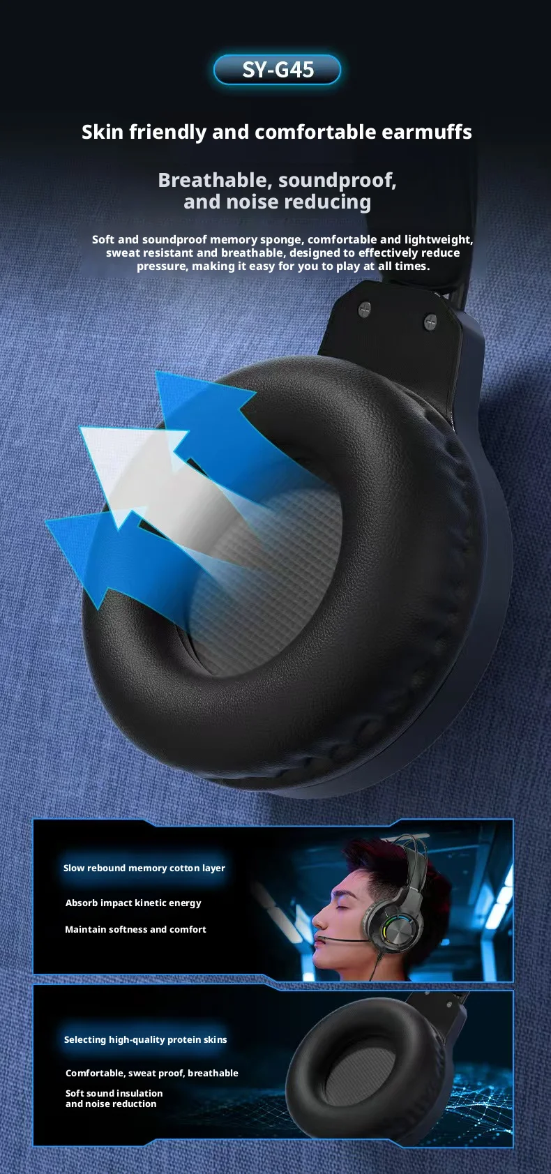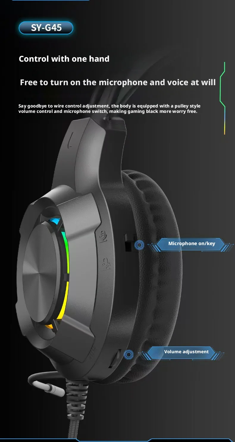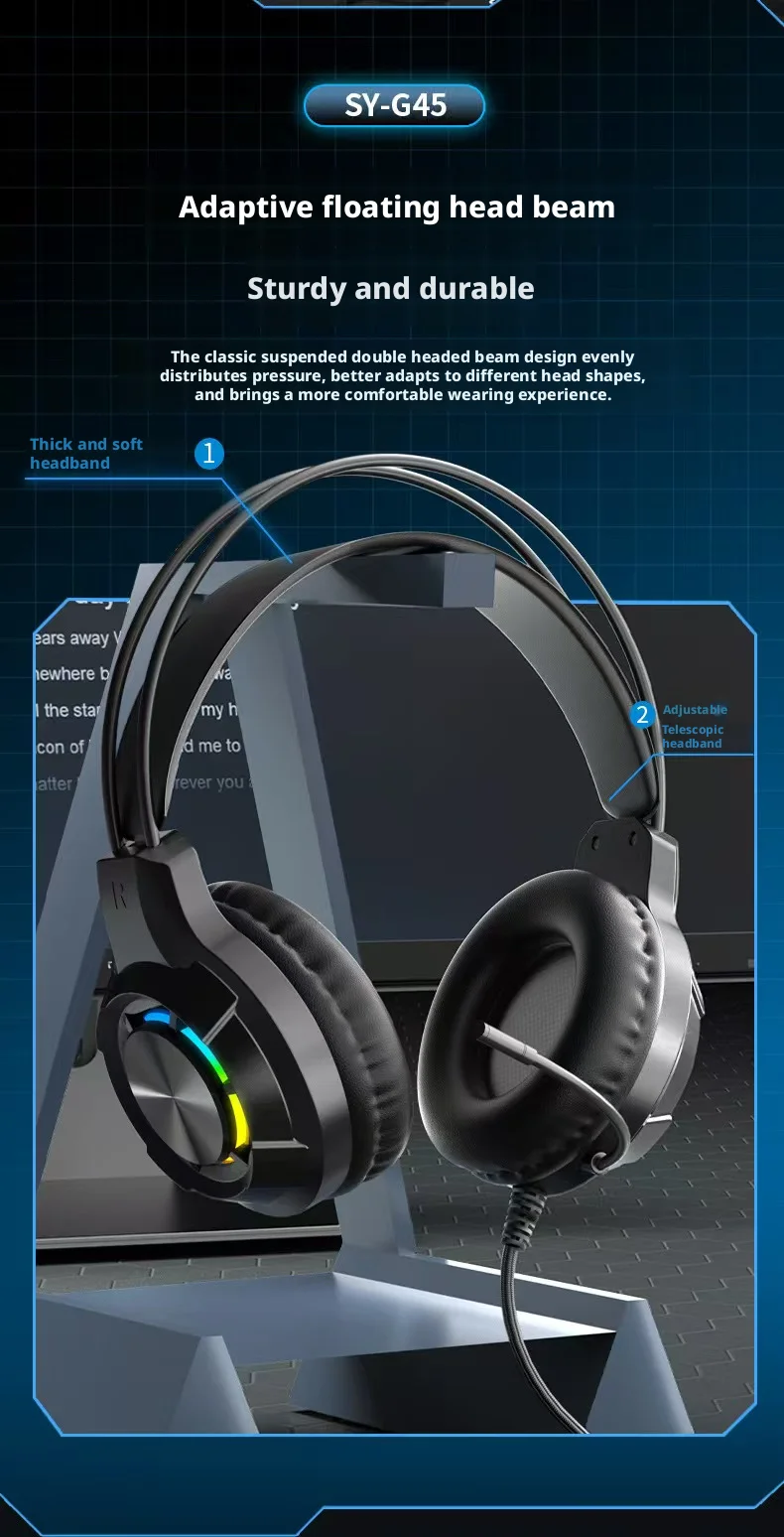 New Wired Gaming Headset with Mic for PUBG RGB Light Deep Bass Noise Reduction Compatible with Laptops Desktops 2 Color Options