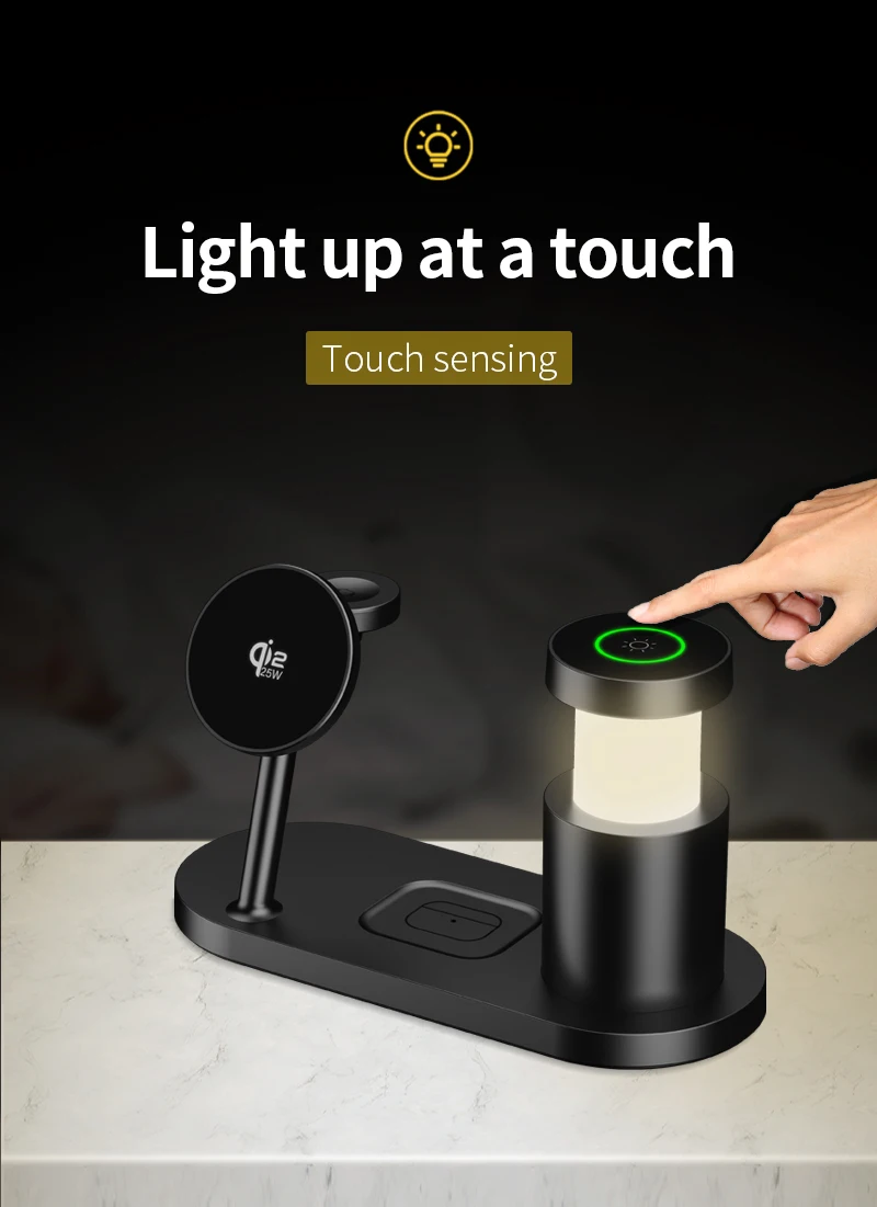Qi2.2 25W Wireless Magnetic Charger Multi-functional Fast Charging Station With Night Light for iPhone17 16 15 Watch Airpods