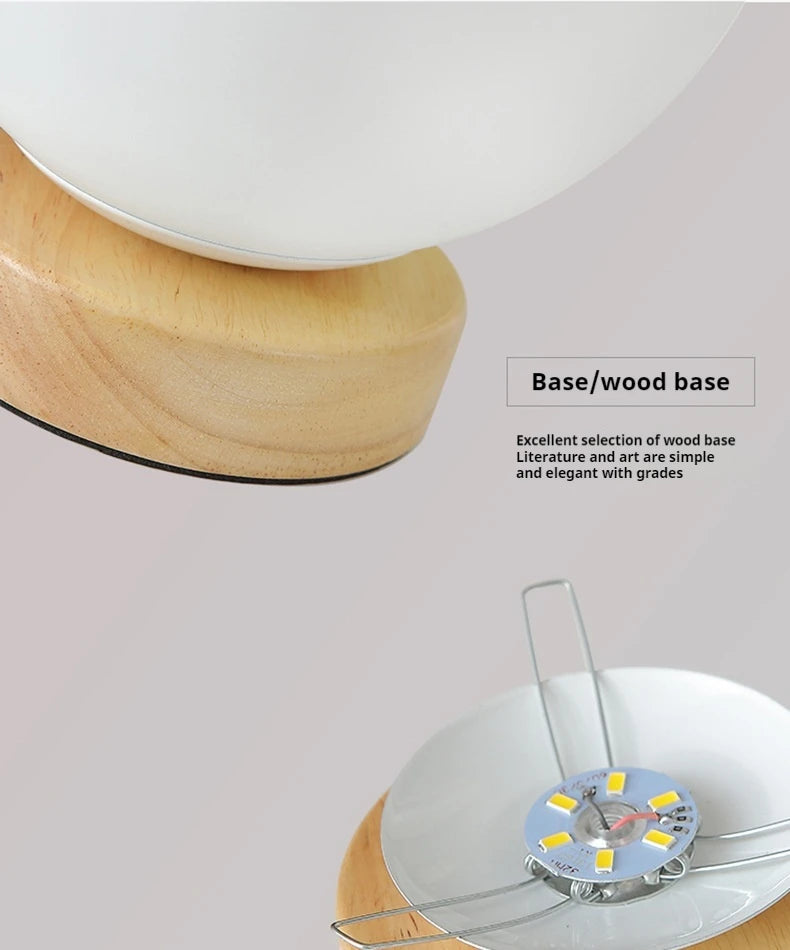 his lamp is meticulously handcrafted with a solid wood base and aglass lampshade. Each piece is unique, with variations in color intensity and distribution of bubbles, making it truly one-of-a-kind.