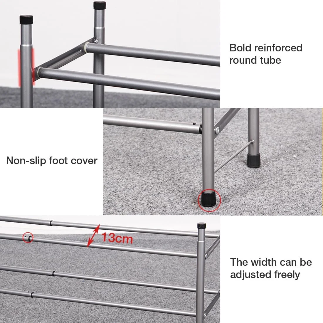- 【STURDY】 Metal construction with 4 wear resistant foot covers makes a stable and durable shoe organizer for a long-term storage solution.