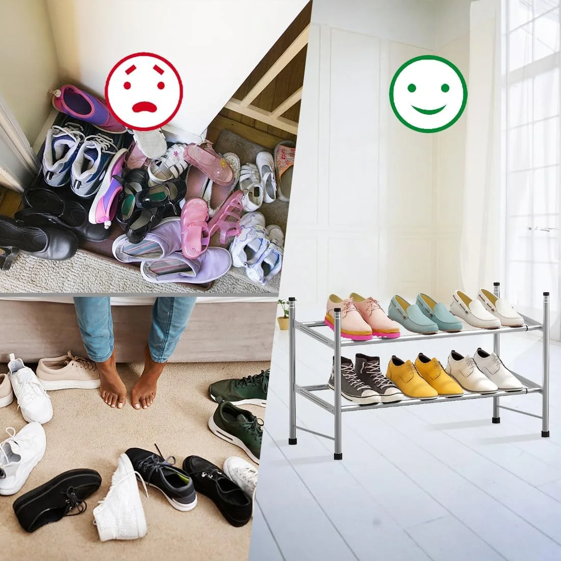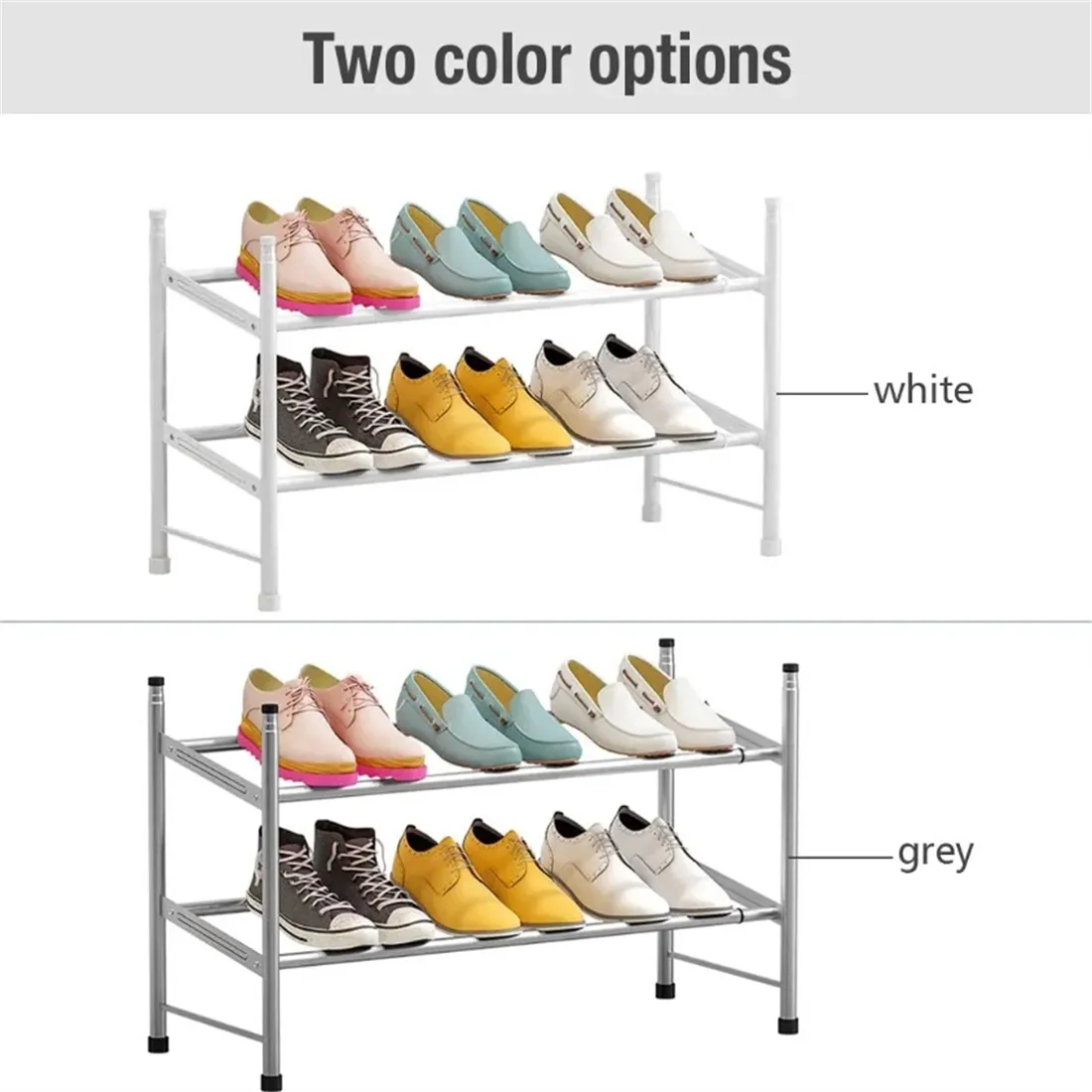 - 【SHOES ORGANIZER】2tier shoes rack can hold all of your shoes, and makes your shoes get rid of the clutter and be orderly organized.