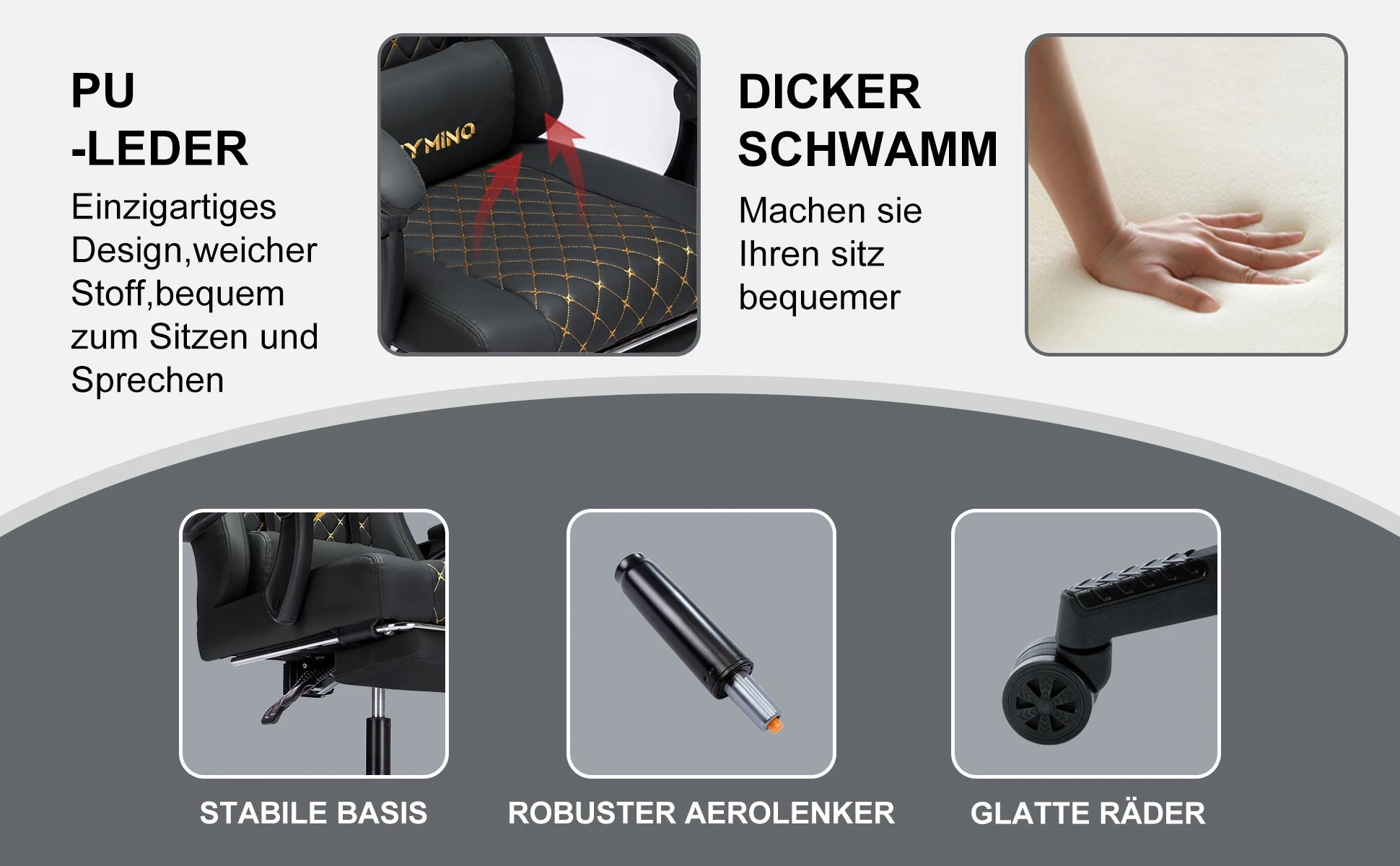 Symino Gaming Chair in Racing Style, Office Chair with Footrest &Adjustable Armrests, 200 kg Load Capacity