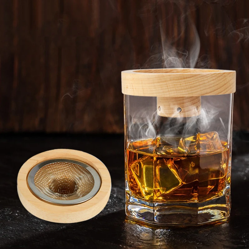Wooden Cocktail Smoker Kit With 5 Flavor Wood Chips Whiskey Smoking Wood Chips Box Cocktails Infuser Kit Kitchen Accessories